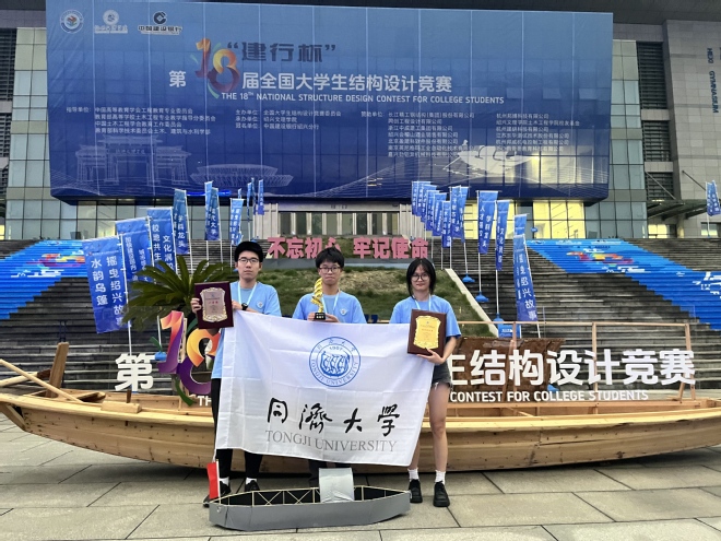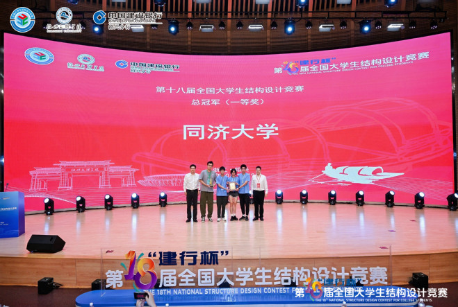在近日落幕的第十八届全国大学生结构设计竞赛总决赛上,由我院师生组成的同济大学学生代表队斩获全国总冠军!同济大学获颁优秀组织奖。