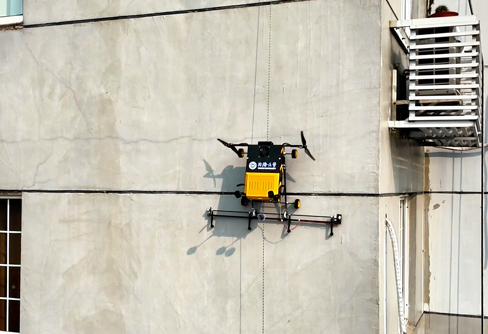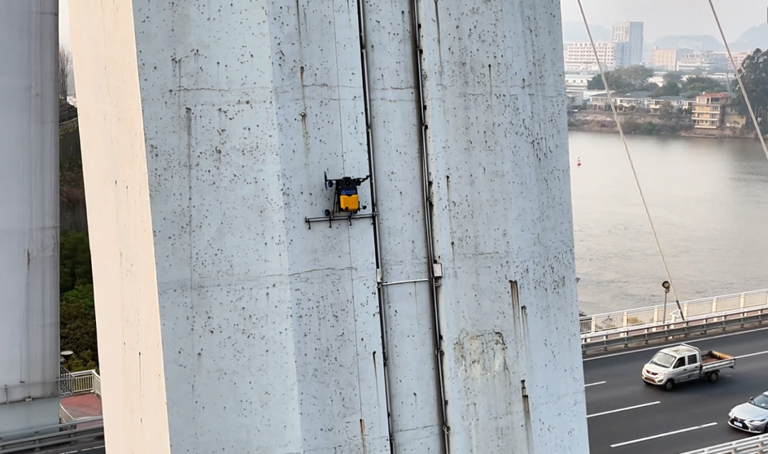 我院孔庆钊教授团队自主研发的爬壁机器人集成高清立体视觉与声学感知模块,可在建筑外墙、风电塔筒、混凝土坝面等多类立面环境中执行裂缝识别、测量、空鼓检测等任务,为建筑与基础设施的智能巡检提供了技术支撑。