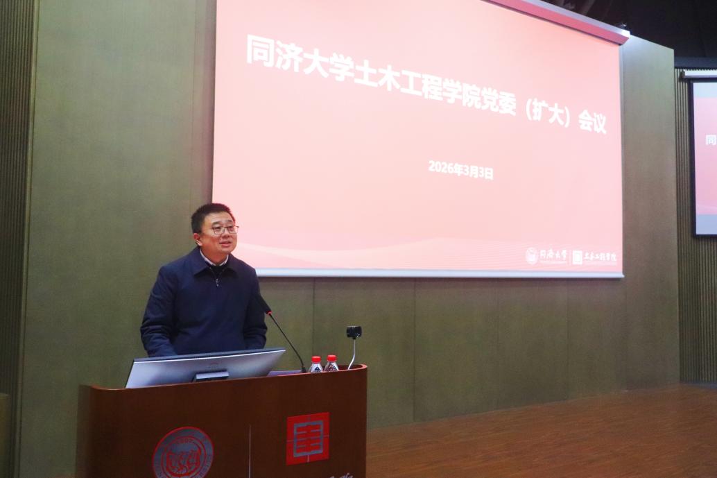 3月3日,同济大学土木工程学院召开党委(扩大)会议,深入学习贯彻习近平总书记关于树立和践行正确政绩观的重要讲话和重要指示精神,全面落实党中央、教育部党组和同济大学党委有关工作要求,对学院开展树立和践行正确政绩观学习教育进行动员部署,并传达学校寒假务虚会精神,部署新学期重点工作。学院党政领导班子、党委委员、纪委委员、各党总支书记、系主任、学院内设行政机构主要负责人、各支部书记共107人参加会议,会议由学院党委书记孔德懿主持。