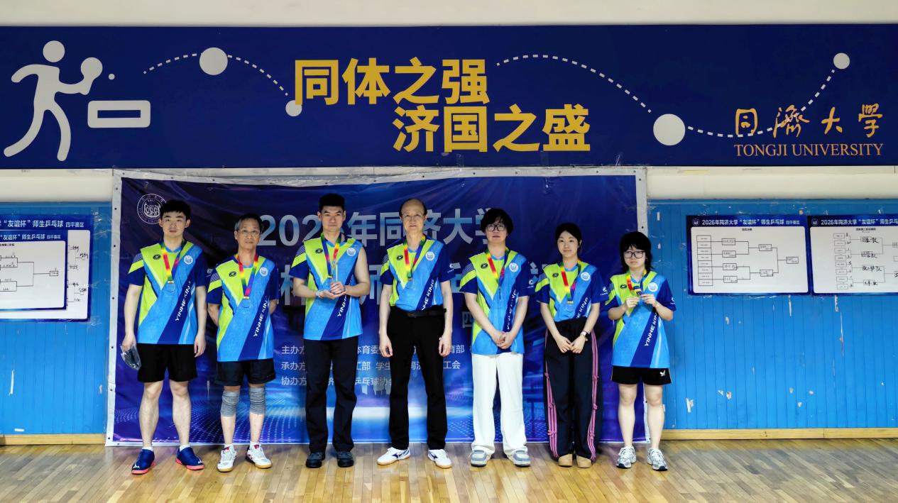 新闻动态4月11日,2026年同济大学“友谊杯”师生乒乓球赛在学校乒乓球馆火热开赛。本次比赛由同济大学体育委员会、体育教学部、校团委主办,校党委学研工部、学生处、校工会承办,校乒乓球协会协办。来自四平路校区的13支球队同台竞技,经过两个周末的小组赛与淘汰赛的激烈角逐,土木工程学院代表队凭借出色发挥,斩获团体赛冠军。